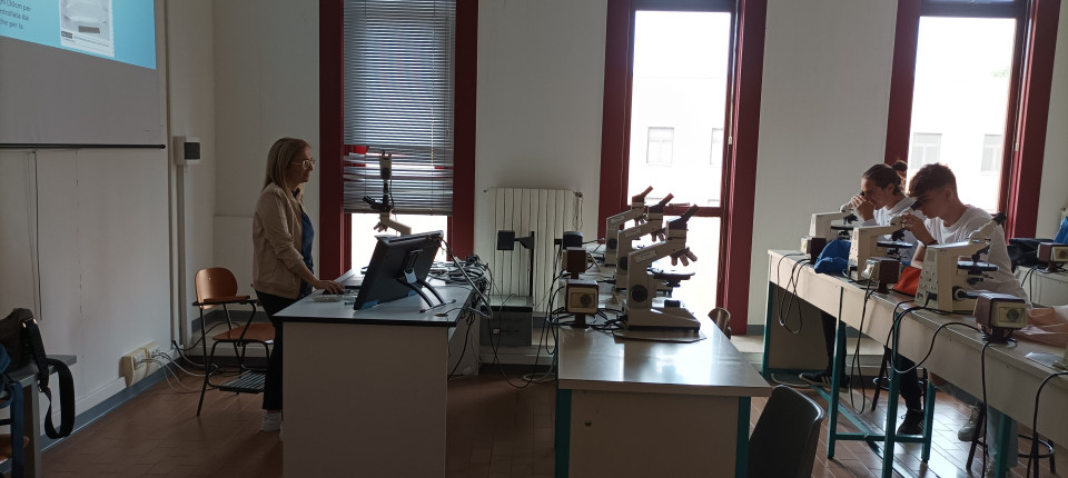 Attrezzature: N. 13 Microscopi Monoculari a luce polarizzata per le postazioni degli studenti e N. 1 Microscopio binoculare a luce polarizzata corredato di telecamera e monitor per la postazione del docente.