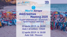 ESN Chieti Pescara, come ogni anno, è lieta di invitare tutti i vincitori di una borsa di studio Erasmus per l'A.A. 2019/20 agli incontri AskErasmus Meeting - Mov’in Europe.